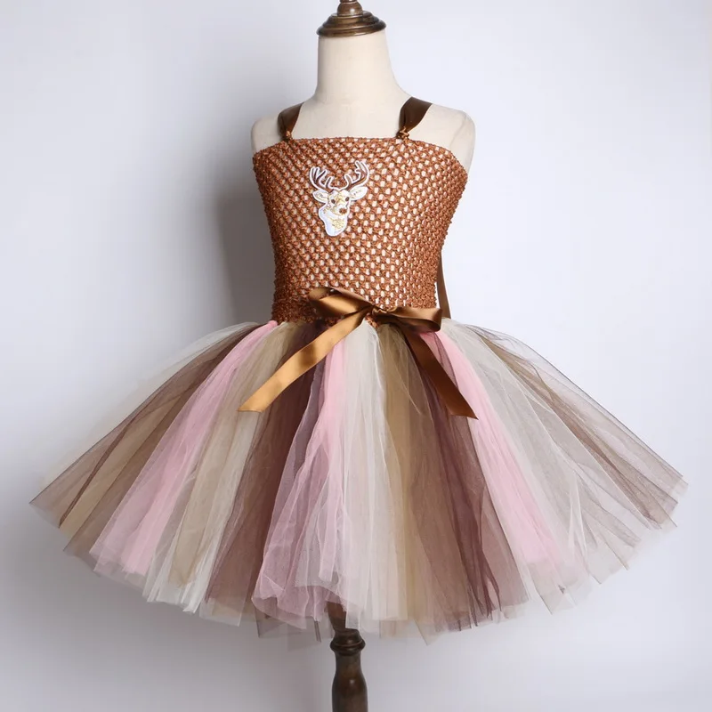 Girls Christmas Elk Tulle Tutu With Headband Girls Cartoon Costume Set For Kids New Year Costumes P