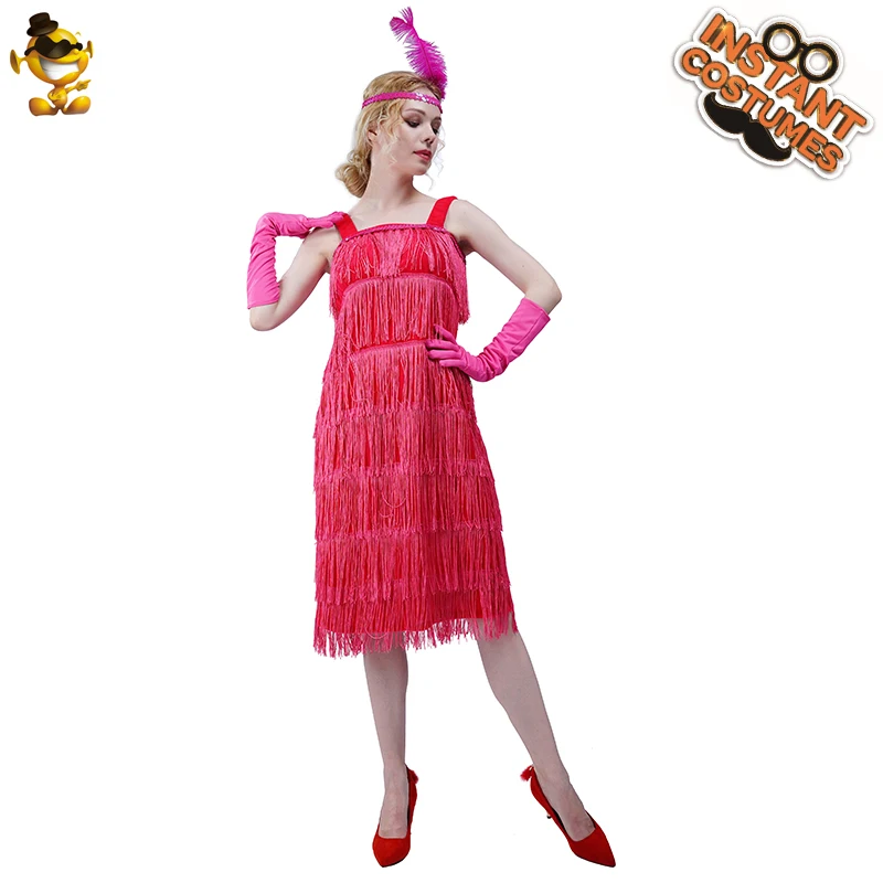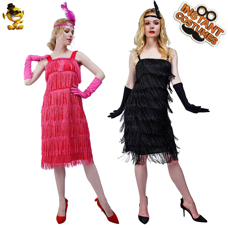 Women Fashion Flapper Costumes Fancy Dress Halloween Costumes for Adult Black&Pink Flapper Dress Co
