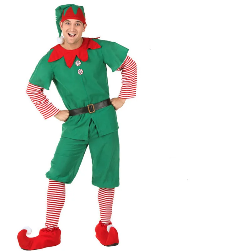 Review Christmas Kids Cosplay Costumes Elf Parent-Child Red Green Jacket Dresses Hats Belt For Adults Wome