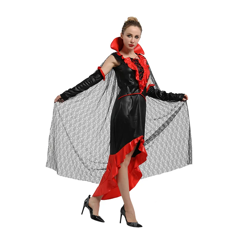 BEST QUALITY HUIHONSHE Sexy Adult Vampire Queen Costume Halloween Womens Vampire Bride Mesh Cloak Costume Deluxe