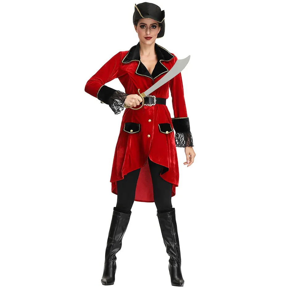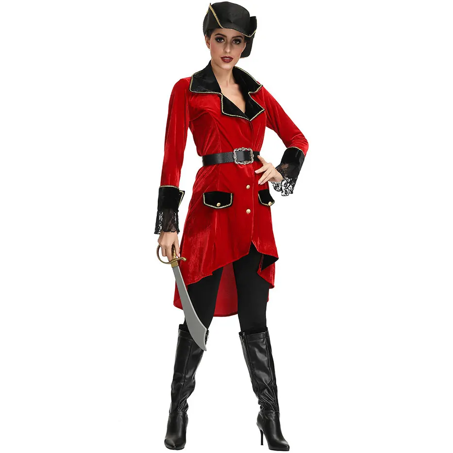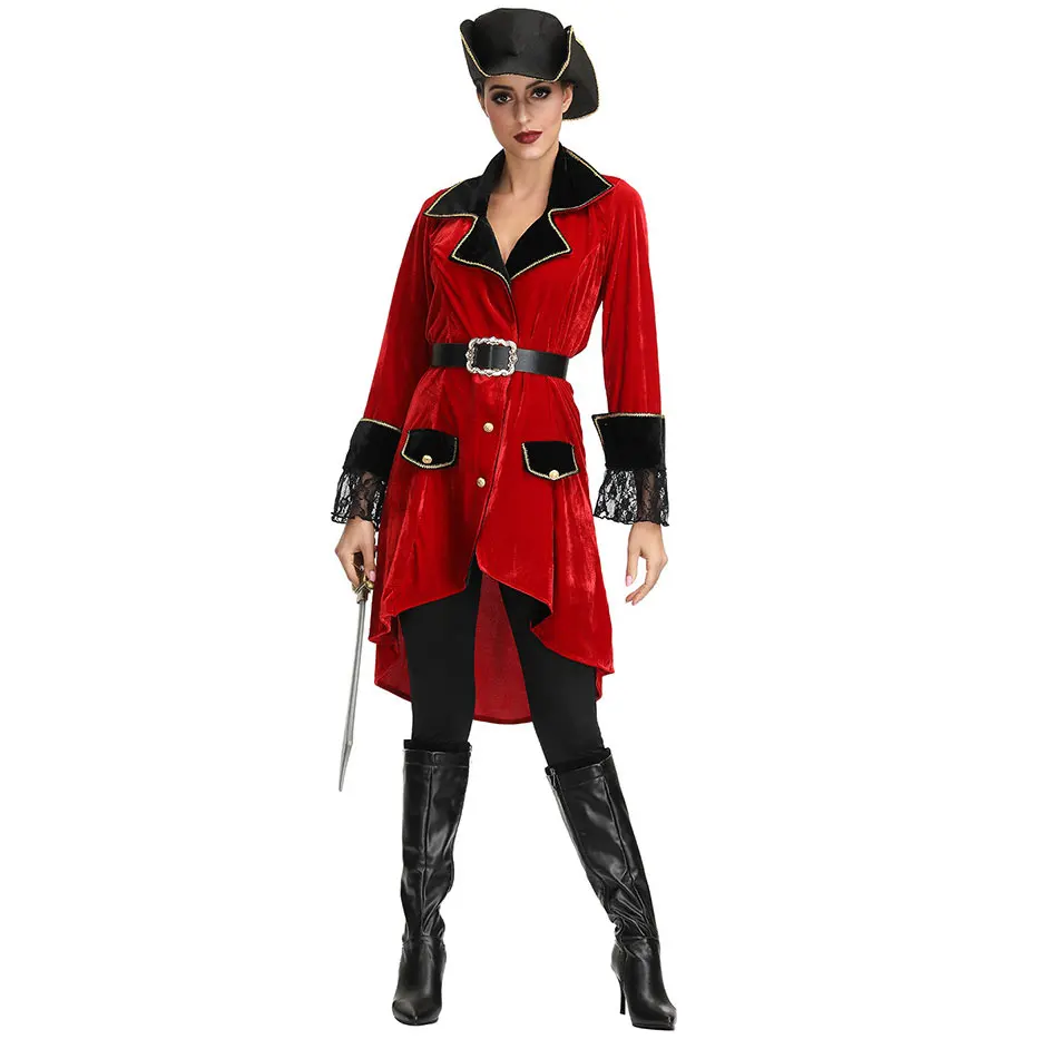 Umorden Adult Women Caribbean Pirates Costume Pirate Captain Cosplay Suit Coat Pants Halloween Puri