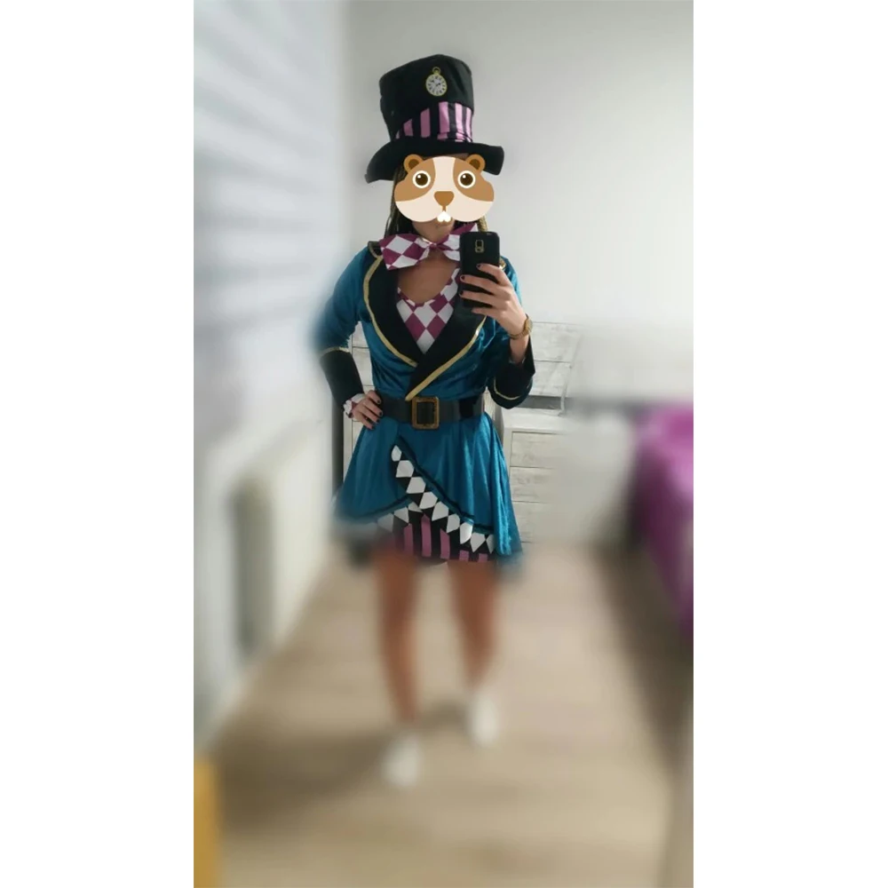 Alice in Wonderland women Cosplay Costume mad hatter adult Outfit Fancy Dress Mr Rabbit Halloween p